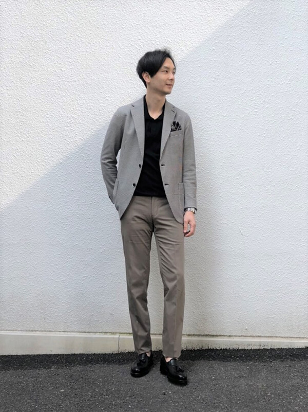 INCOTEXのコーディネートと合わせた方が同じですが、黒のニットポロにハマってるでしょうね…笑