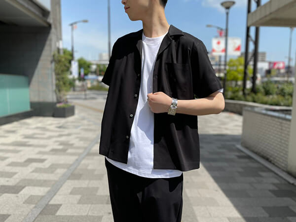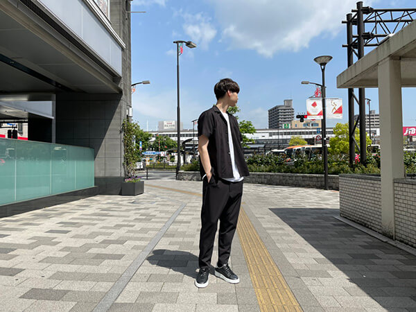 メンズには珍しくショルダーラインの部分に中性的な刺繍が施されており、遊び心のあるデザインとなっています。