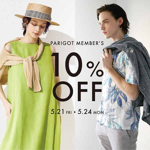 本日5月21日(金)から5月24日(月)までの4日間限定で、全商品10%OFF のお得なキャンペーンを期間限定で実施致します。