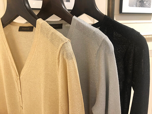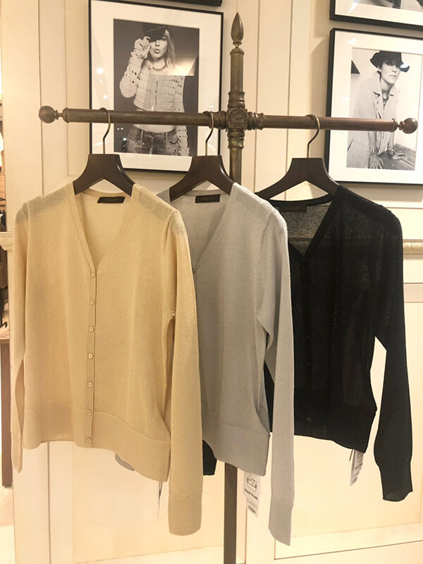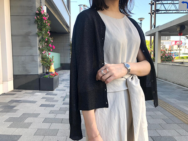 透明感のある素材に上品なラメが魅力的なカーディガン。