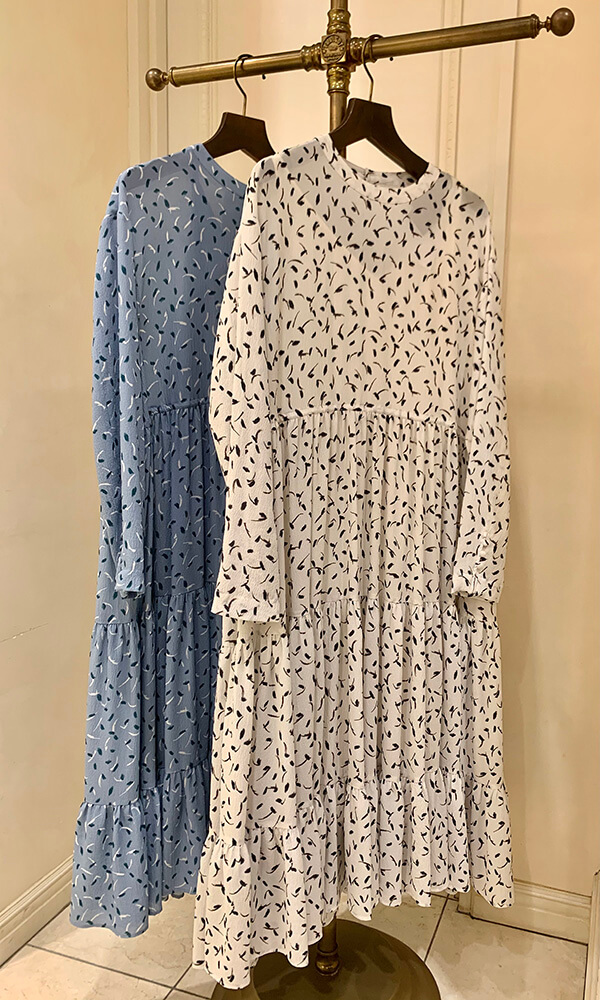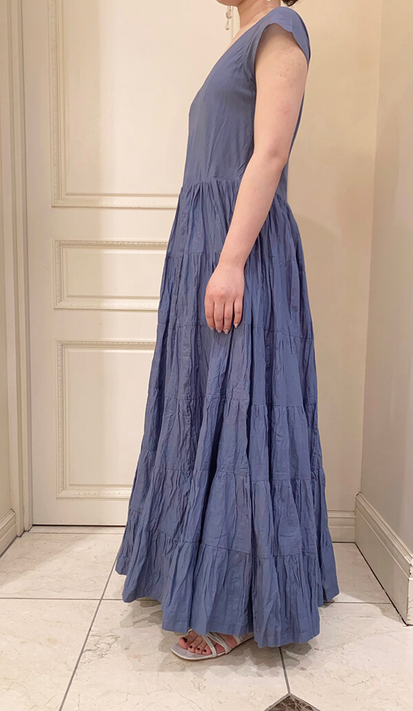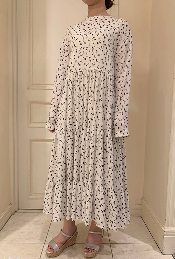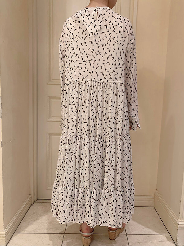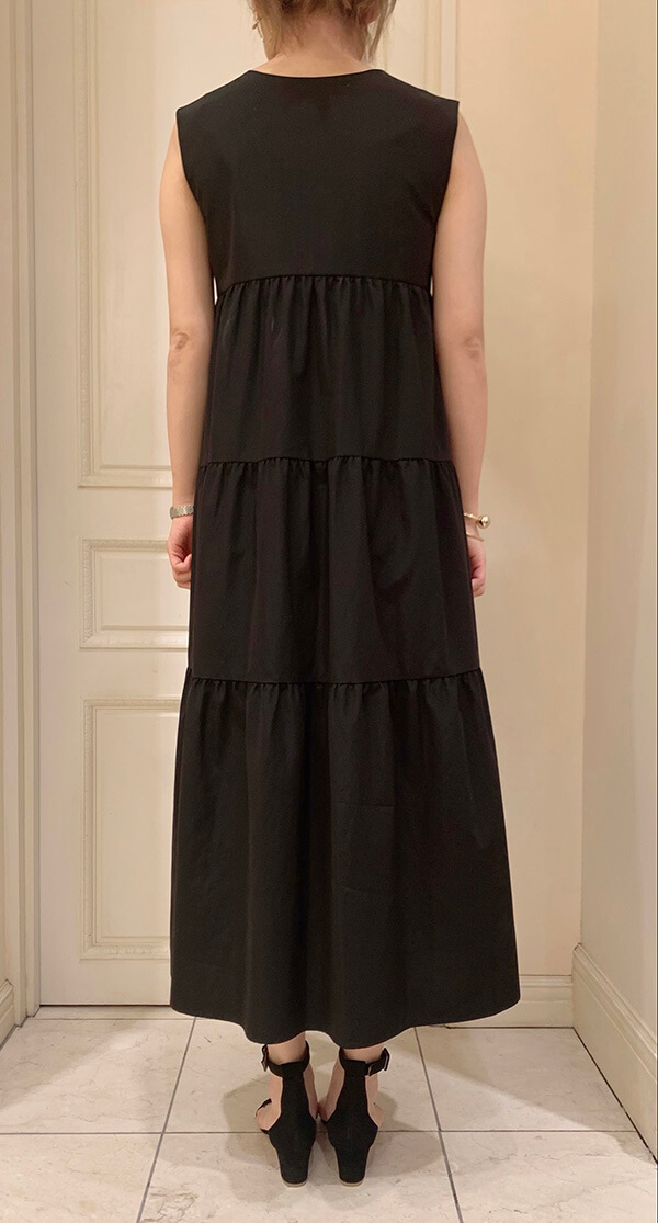 絶妙なネックラインで胸元はスッキリ、また計算されたティアードの切替位置により着膨れせず、ゆったりとリラックス感がありつつもバランス良くお召し頂けます♡