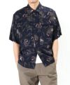 総柄のシャツのとルーズスラックスを合わせることで都会的な印象に変わります。