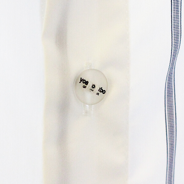 ニットの切り替え素材に加え、ボタンもロゴ入りとこだわりが随所に散りばめられています。