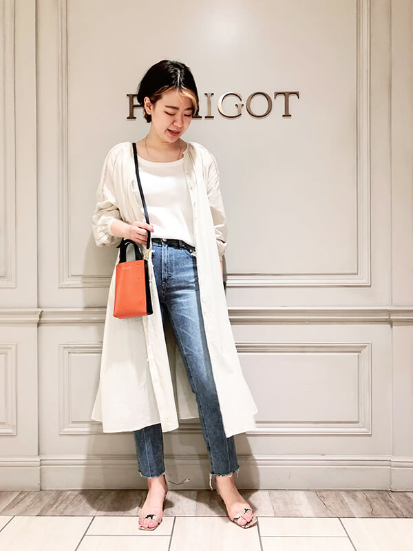 ワンピースと合わせた際に、裾のカットオフがチラッと見えるのもとても可愛いですよ♡