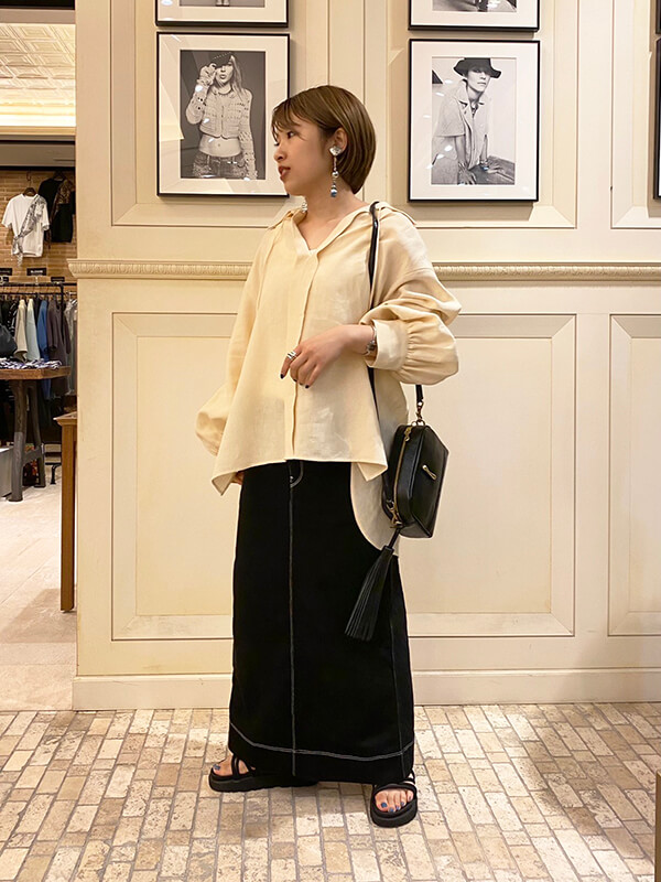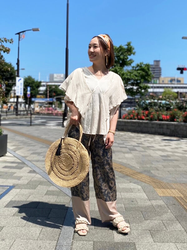 普段は、カジュアルなスタイルやシンプルなものを選ぶことが多いのですが、今回は透け感のある女性らしいブラウスをチョイス。
