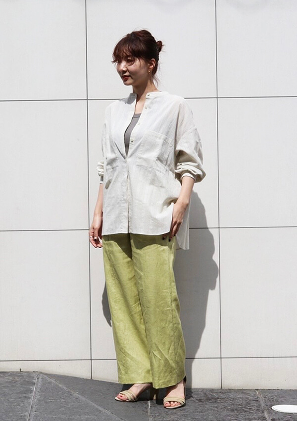 続きまして、福山店のファッションアイコン“saki”が選んだのは、PARIGOT(パリゴ)のリネンワイドパンツ!
