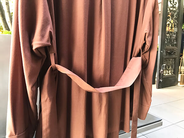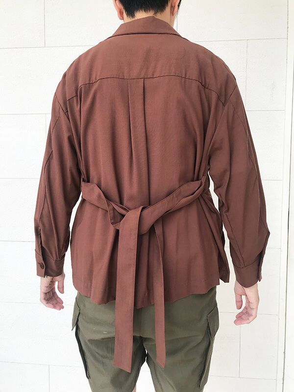 ウエストベルトを後ろで縛るとよりスタイリッシュに着て頂けますので、気分で雰囲気を変えられます。