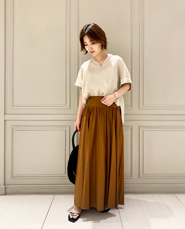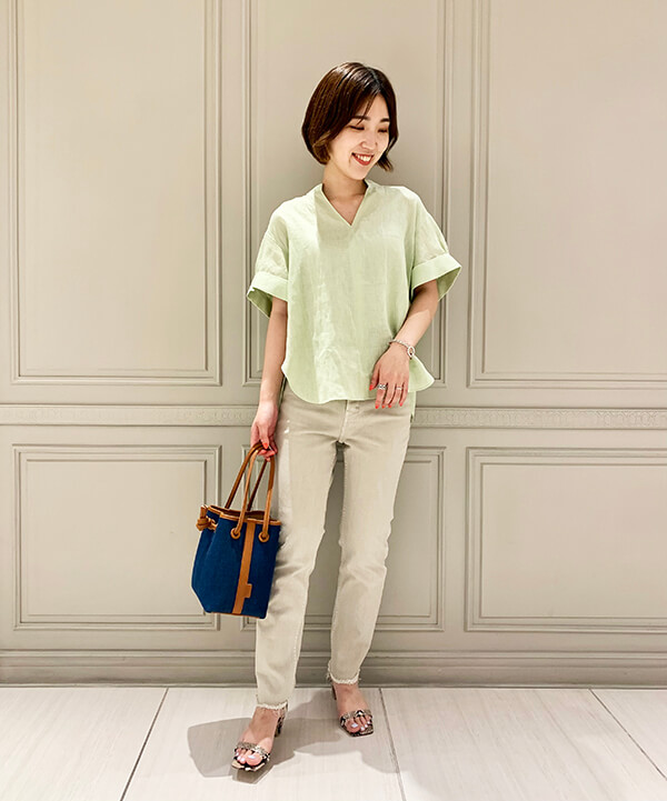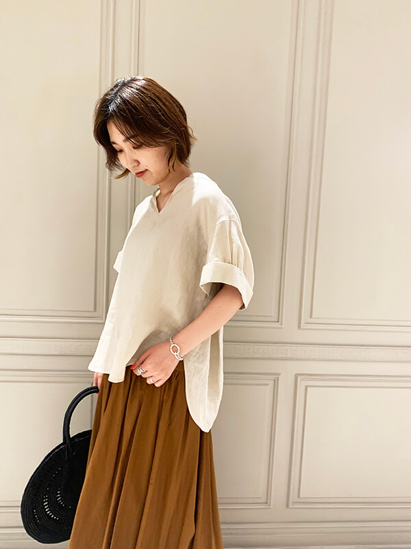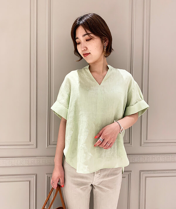 まずは、ハウスブランドパリゴのスキッパーリネンブラウス!