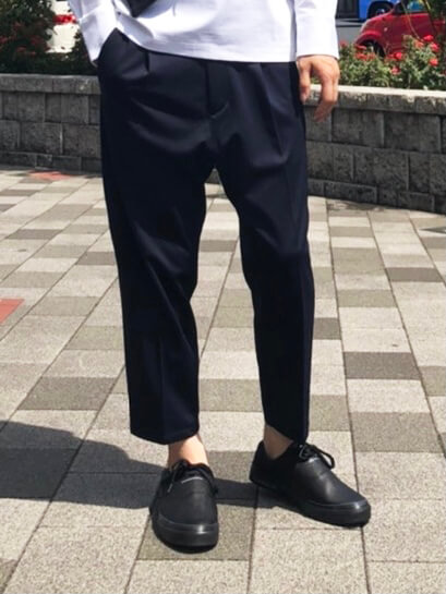 スタンダードなシルエットで裾にかけて細身になっていく美しいシルエット。