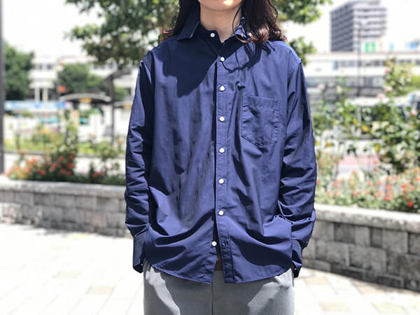 途中で襟付けをやめてしまったかのようなデザインが特徴的です。