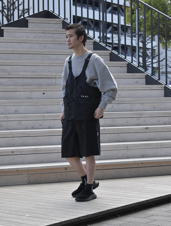 アウターベストとして、オーバーサイズのトップスの上からでも着用していただけるサイズ感になっております。