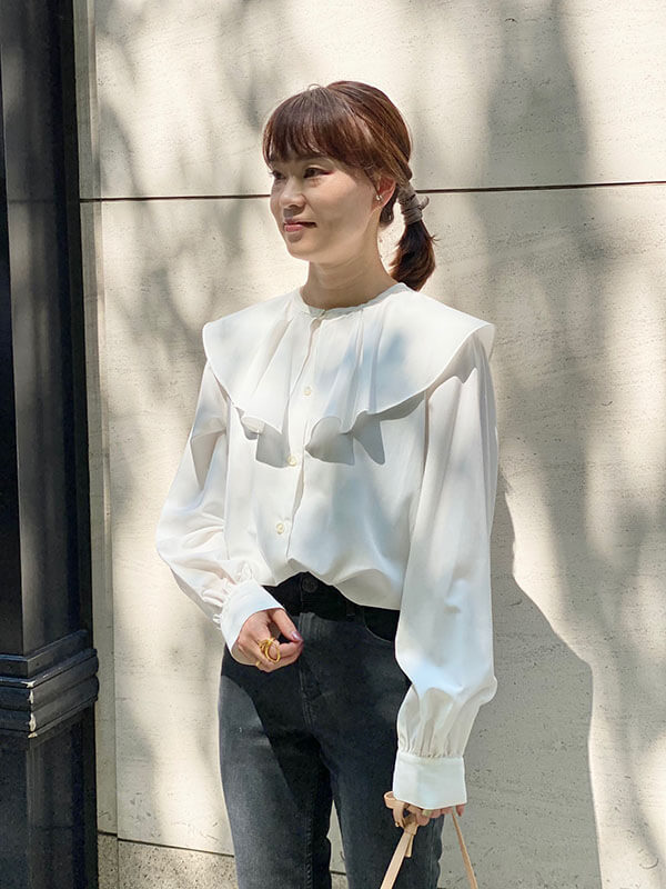襟を外したら、シンプルな白いベーシックブラウスとしても楽しめます。