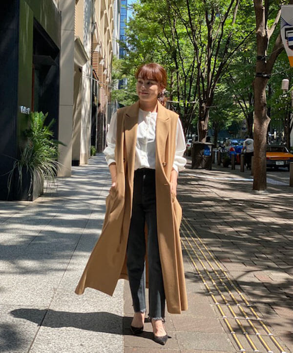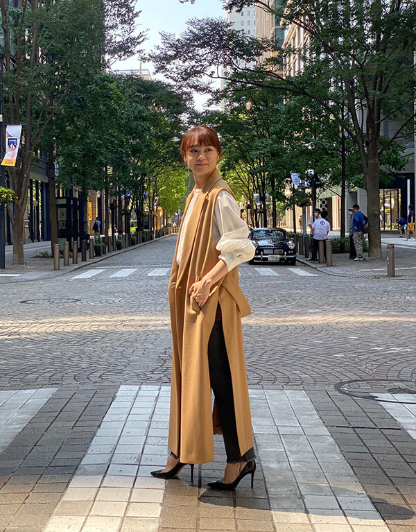 今年はシンプルブラウスには、ロングジレがおススメ!