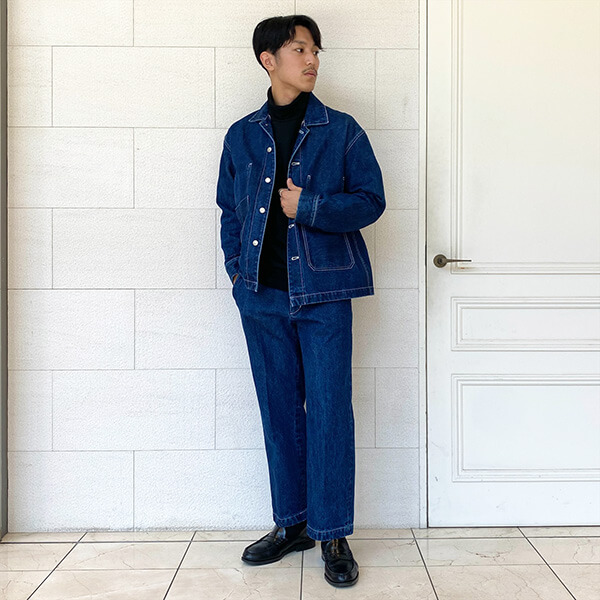 ワーク感の強いデザインや素材感でデニムらしさを存分に楽しんでいただけるセットアップです。