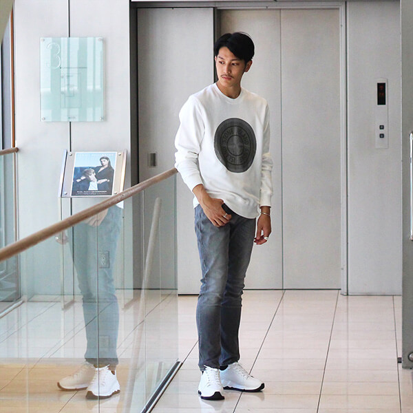 パンツにはセンタープレスが施されており、デニムのカジュアルさにキレイ目な印象がプラスされています。