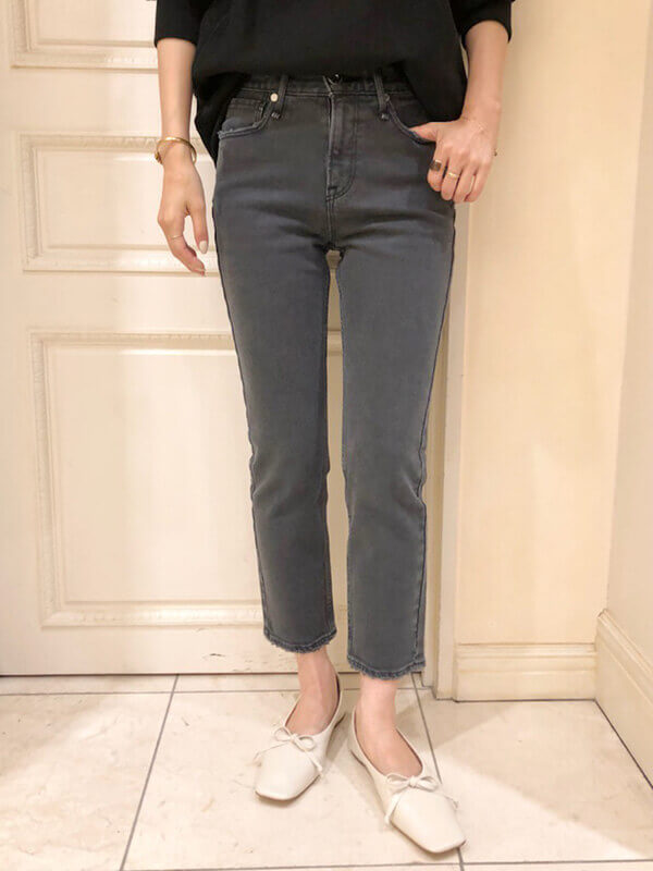 足首が覗く少し短めのレングスが、足元に抜け感をプラス。