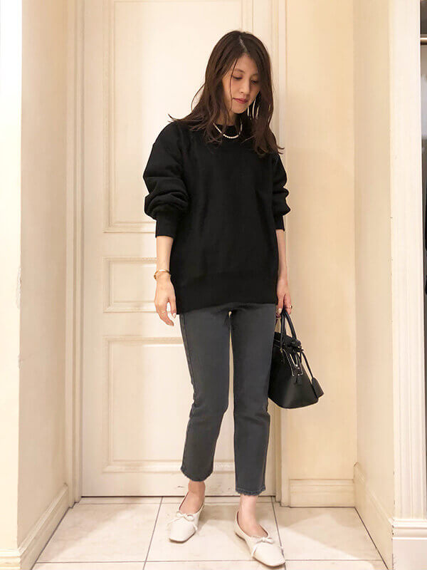 カジュアルなスウェットと合わせても、レディライクに仕上げてくれます。