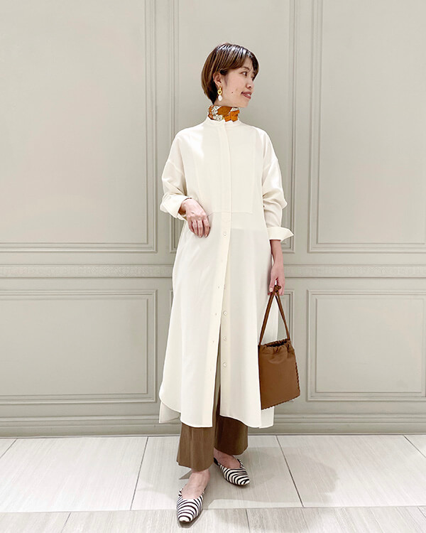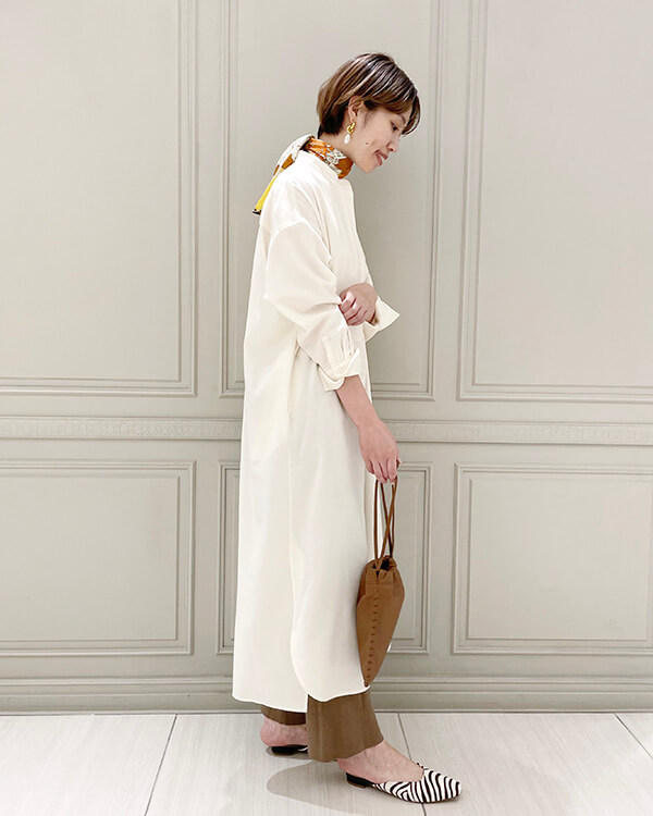 最後は、リラックス感のあるワンピースにニットパンツを合わせたスタイリング。