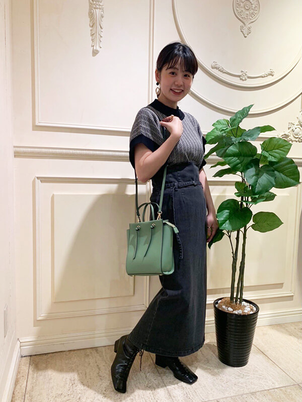 ついつい秋冬はダークなコーディネートに頼りがち、、。だからこそプチプラバッグが映える絶好のシーズンです♡オススメは年代問わず人気のあるグリーンカラーのプチプラショルダーバッグ。結びめデザインがアクセント!かっちりとした直線的なシルエットがスタイリッシュな雰囲気。コンパクトながらも縦長シルエットでマチもあり、見た目以上の収納力で優秀なアイテムです◎