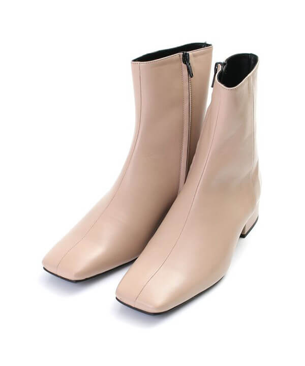 スクエアトゥにキトゥーンヒールのショートブーツは、何と!