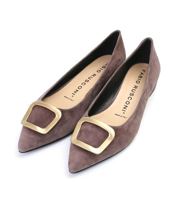 ファビオルスコーニでロングヒットのパンプスがこちらのバックルフラットパンプスです。