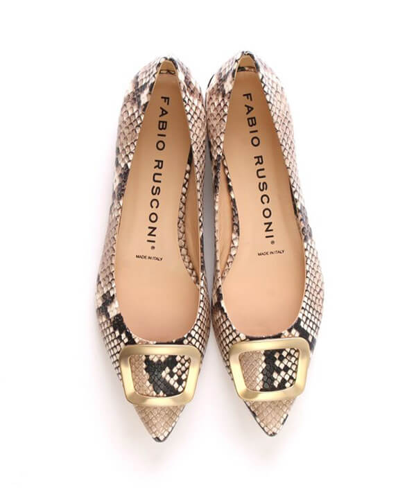 こちらも定番でずっと売れ続けている、パイソン柄のフラットパンプス。