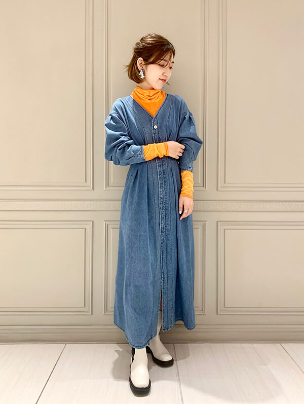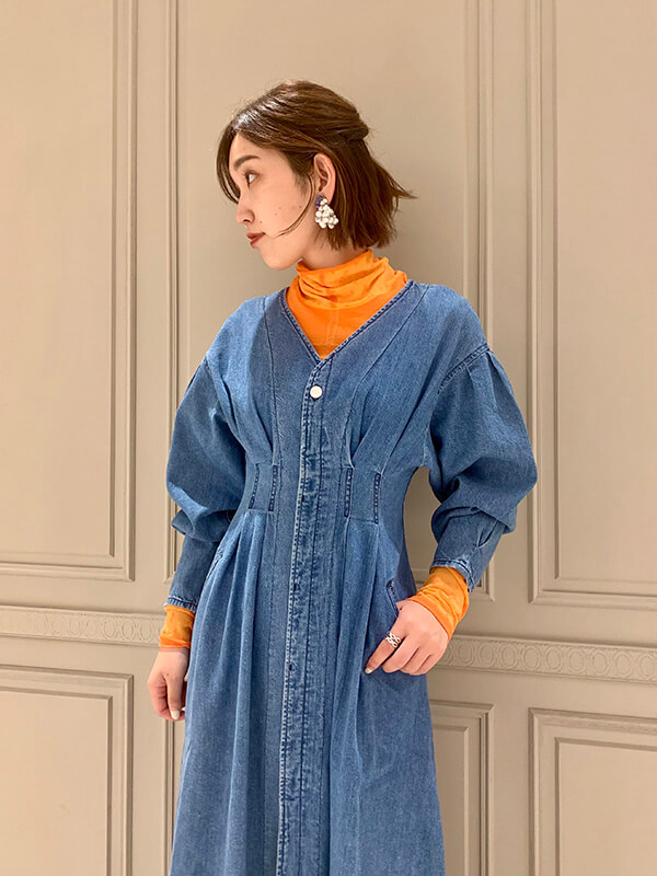 デニム素材が似合うのは骨格ナチュラルさんだと様々な雑誌で謳っていたりしますが…JAPAN DENIM×AMERIのデニムワンピースはウエスト位置も高くてAラインシルエット、しかもオンスが軽くて柔らかいというウェーブ体型さんにピッタリの形なんです!!