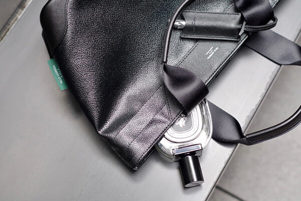 メイン素材にはシャープな型押しを施したPVC素材を使用。上質な雰囲気はさることながら、軽量かつ手入れもしやすい素材で利便性が高いです。