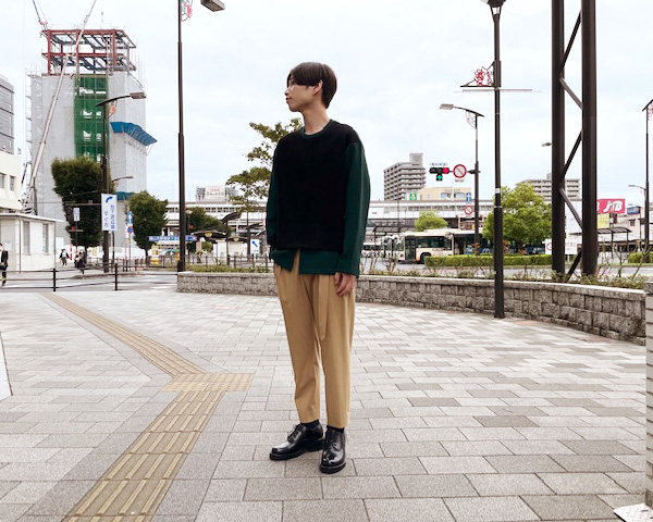 トップスはインナー側にスリットの入ったレイヤードデザインで、コーディネートにアクセントを加えてくれるクルニらしい一枚をPARIGOTだけのカラーで特別仕様に別注。