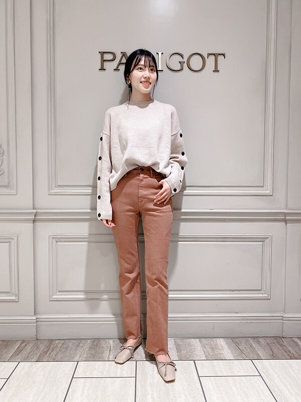 ブーツカットの特徴でもある膝下からのフレアは少し長めの丈により、脚長効果も抜群です!