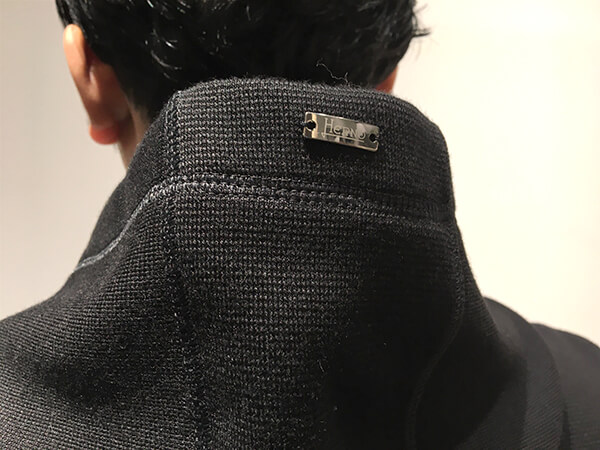 ニット部分は地厚でしっかりと編み込まれているので風を通しにくく、保温性に優れているところもポイントです。また、しっかりとした感じはあるのですが、編みのテンションもバランスよく調整されており、着心地も抜群です。ネック部分も非常に心地よいフィッティングです。