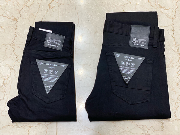 ブラックデニムは30回洗っても色落ちがしないというお墨付き。