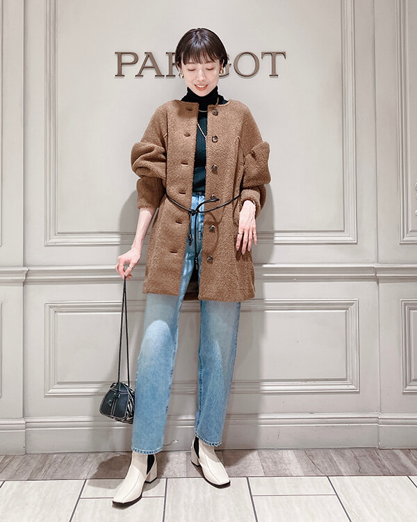 ドロップショルダーで今シーズンも引き続き人気のボア素材コートはナチュラルさんと相性抜群★