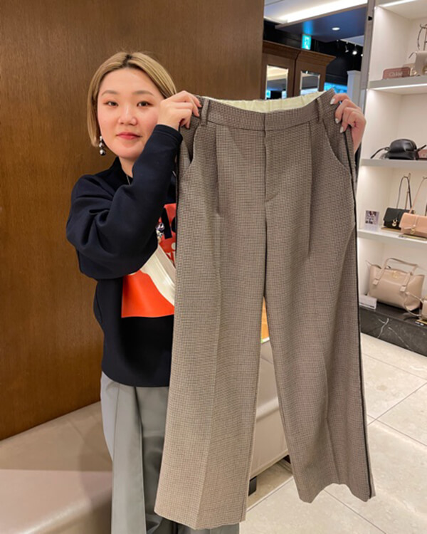 こちらは秋冬欠かせないチェックパンツから、サイドにパイピングが施された、デザインで登場しています!