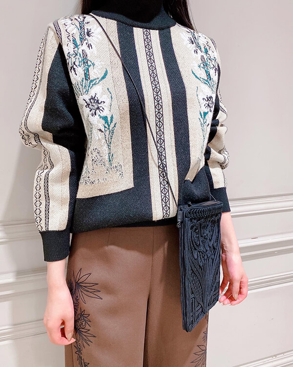 草木や花弁のそれぞれの部分ごとに異なる糸や織りを組み合わせることで、ニュアンスに富んだ表情を織りなした素敵すぎるニットです!