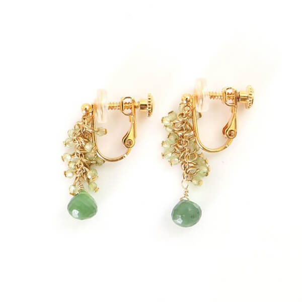 イヤリング金具を目立たせないデザインで、まるでピアスを着用しているかのようなすっきりとしたフォルムに仕上げています。