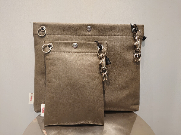 大きい方のタイプは中にポケットの部分もあり、ミニマルなデザインの中にも気の利いたディテールが加えてあります。
