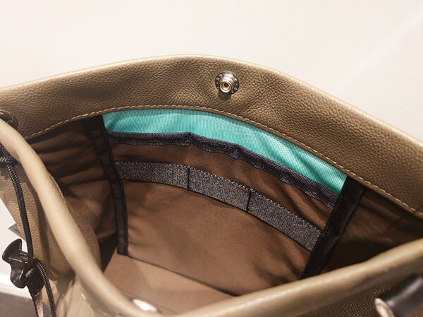 メインポケットも大きく開閉し、中にはファスナーの収納部分もしっかりとあります。