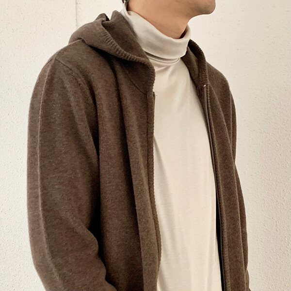 まだ寒くない時期はアウターとして、そして寒くなればインナーとしても活躍してくれるニットパーカーは今季大人の方にお勧めです。