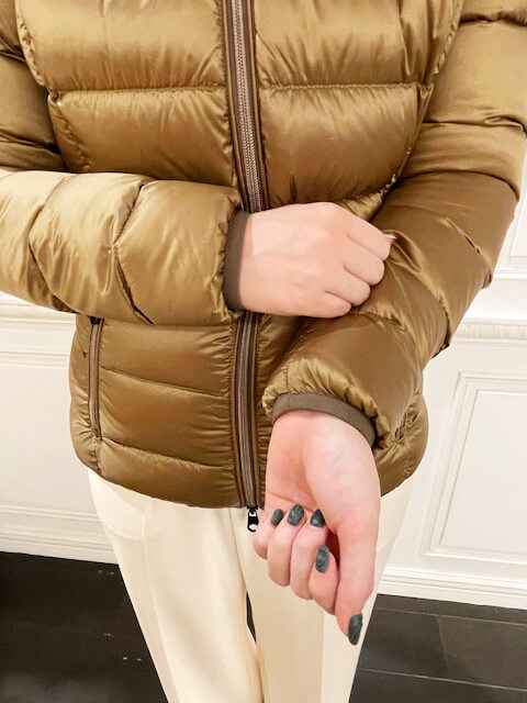フードの裏地にはシャイニーナイロンが使用されており、女性らしい艶感がプラスされて上品で洗練されたカジュアルスタイルを叶えます。