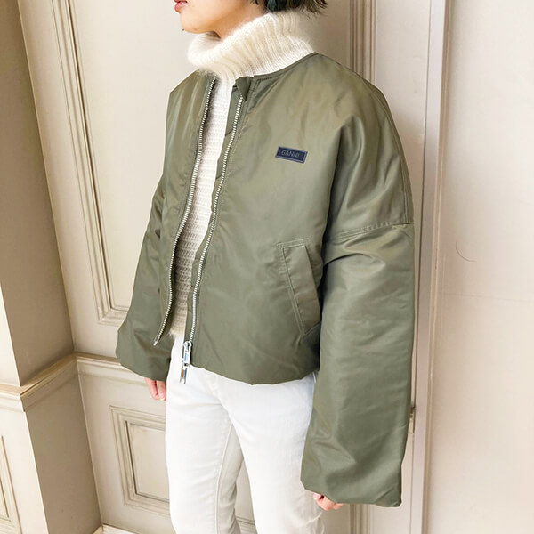 袖口はやや長めでフレア感がありながら、思い切ったショート丈はコーディネートにメリハリを付けてくれます。