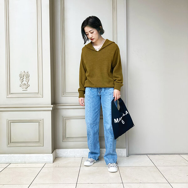 ウォッシュのかかったシルエットのデニムと合わせてこなれた雰囲気に。