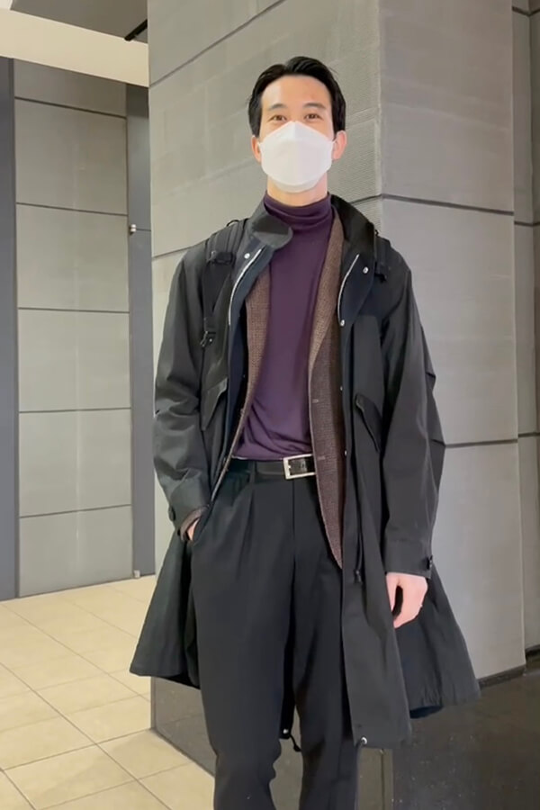 というわけで今回は出勤したての福山店メンズスタッフを捕まえて、リアルな出勤コーディネートを皆さんにご紹介致します!
