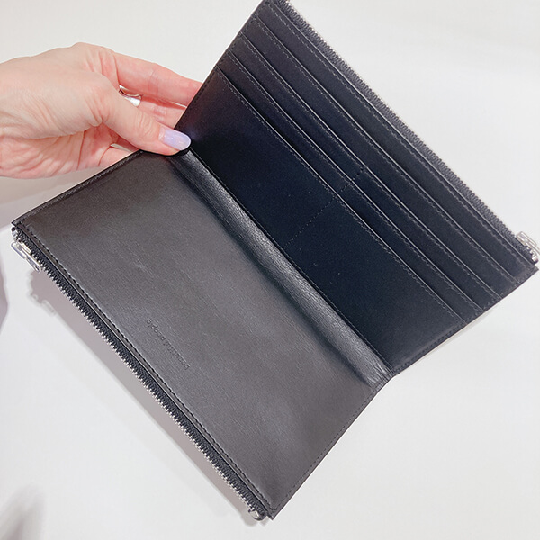 長財布は、がばっと広がる二つ折りのタイプ。