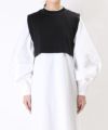 ワンピースとのレイヤードで鮮やかなカラーを主役にするスタイリング。