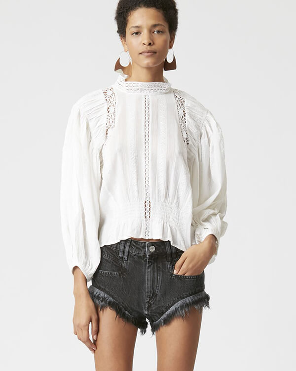 繊細なハシゴレースと楊柳コットンの素材感で贅沢なフェミニンブラウス。