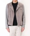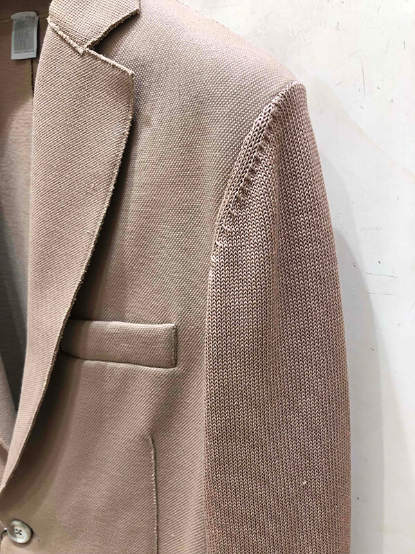 一見端正なテーラードジャケットに見えますが、袖がニットに切り替わったユニークなジャケット。