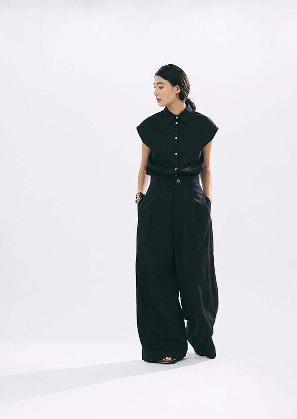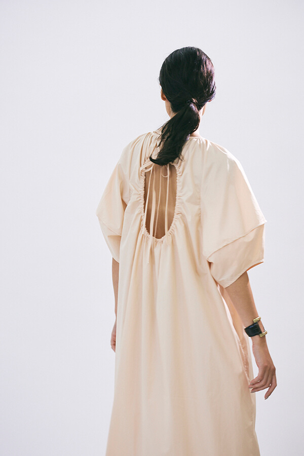 夏にさらりと着たい、リネンバックオープンワンピース。