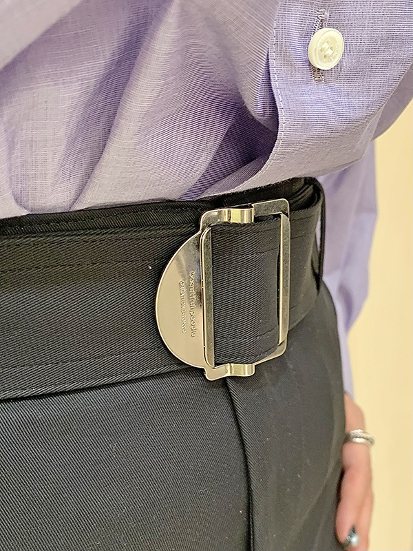 男女ともにお召しいただけるベルト付きのセミワイドパンツです。