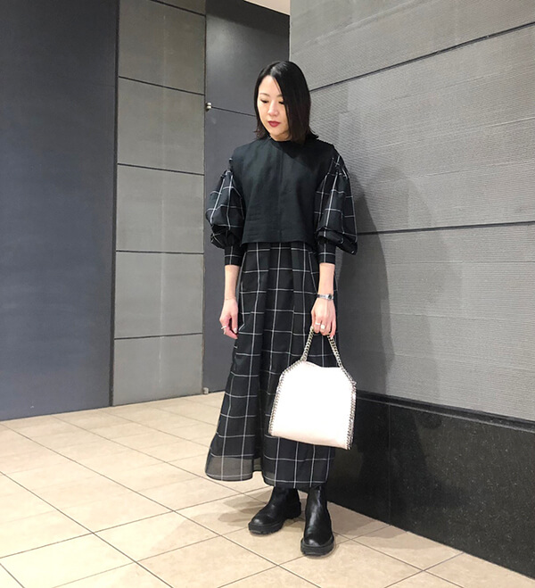 全体を引き締めてくれるハードな小物と合わせて、マニッシュに仕上げました。